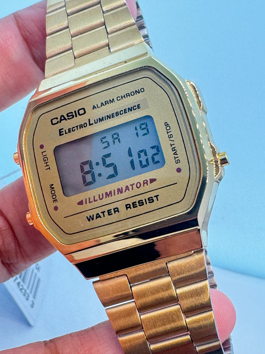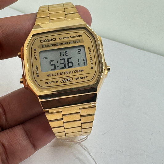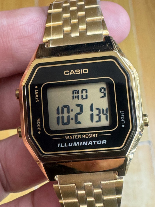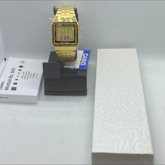 Casio Goldtone Color Watch , Unisex Wrist Size , Adjustable Band Band Expand up to 8 inches Long, 35 mm Diameter New Item Stainless Steel Digital Movement