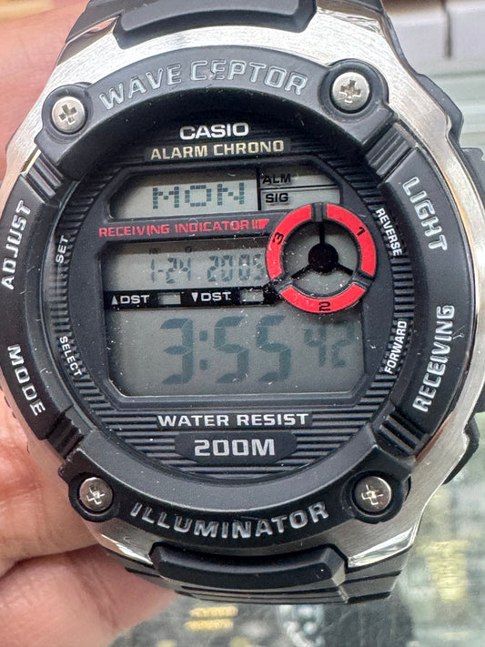 CASIO SPORTS WATCH FOR MEN OR FOR TEEN 40 MM DIAMETER CASUAL WORK OR DAILY WATCH BRAND NEW ITEM 9 INCHES ROUND LONG NEW ITEM , NEW BATTERY , LIGHT, TIMER, STOP WATCH